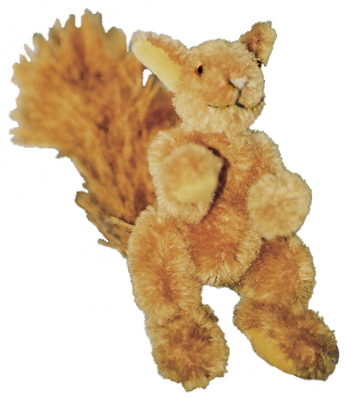Squirrel ist aus braunem Mohair gefertigt. Er ist 5-fach gegliedert und ist mit Synthetikwatte gefüllt.
