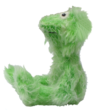 Quark ist aus grünem Kurz- und Langhaarmohair gefertigt. Er ist 5-fach gegliedert und mit Synthetikwatte und Granulat gefüllt.